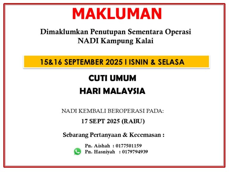 JADUAL KELAS MAHIR INTAKE 2 NADI KG KALAI